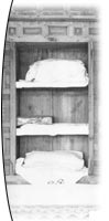The shelf continues over the bood. Ornamental arm rests protect the divan spreads