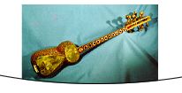 bull or an ox. The stem is made of hard wood, with frets made of fishing line.