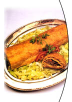 Five or six eggs broken into water with some ash together with three tablespoonfuls of cooking fat and salt are beaten thoroughly and flour is slowly added to it and a dough made of it. Apple-sized clumps are made of this dough. At another side, a stuffing is prepared with cheese, parsley, two eggs, the roast of two finely chopped medium-sized onions and 300 grammes of ground meat. Hands are oiled and fine sheets are rolled from the dough clumps. The stuffing is placed lengthwise into the sheets which are then rolled and placed into an oiled tray. Melted butter is poured on it before the tray is put into furnace.