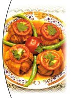 Eggplant slices are placed on a tray in crosswise twins. The cooked meat is placed on the centre and eggplants are bundled. Round slices of tomato are put on top of each bundle and toothpicks are pushed into it in order to keep the bundles together, Sauced water in the saucepan is poured into the tray and cooked for about 15 to 20 minutes before serving warm.